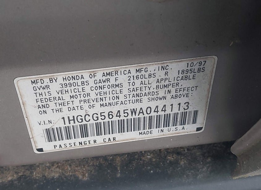 VIN: 1HGCG5645WA044113 · ELKTON, MD, 21921 · DE CLEAR