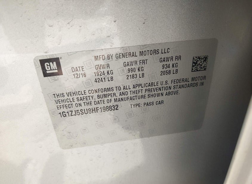 VIN: 1G1ZJ5SU8HF198832 · HOUSTON, TX, 77032 · TX ORIGINAL