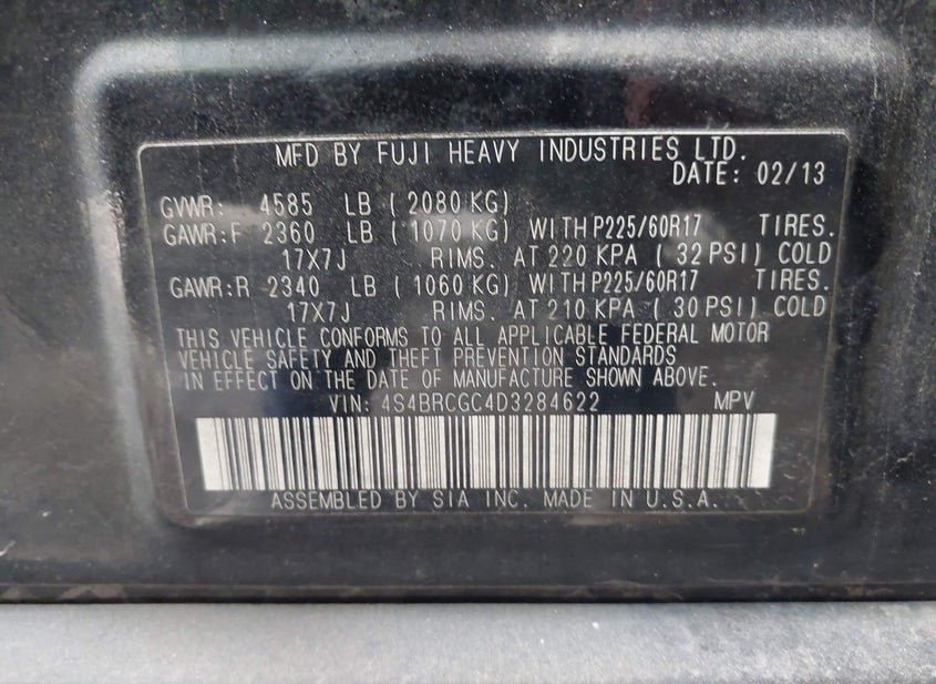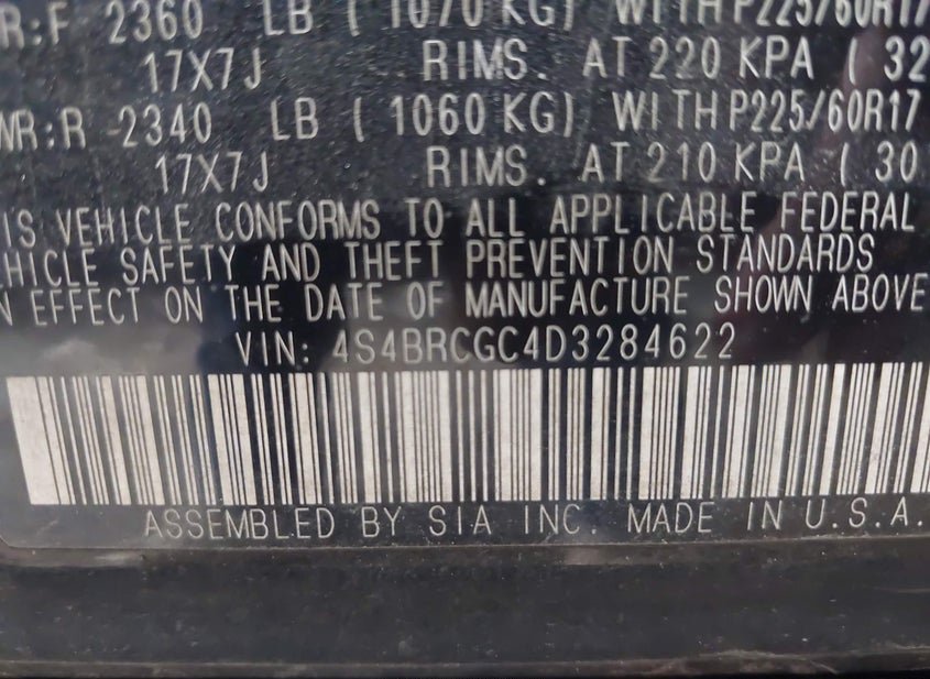 VIN: 4S4BRCGC4D3284622 · Knoxville, TN, 37914 · TN Clear