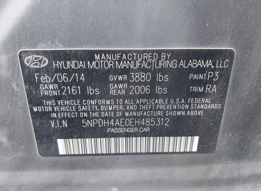 VIN: 5NPDH4AE0EH485312 · Spokane Valley, WA, 99216 · ID Clear IF LOST/STOLEN: CANNOT GET DUPLICATE TITLE