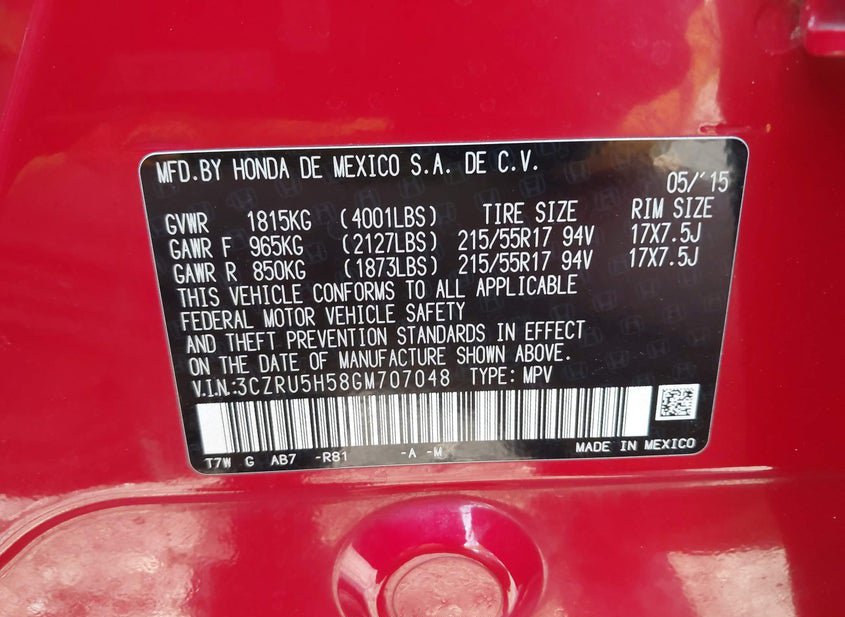 VIN: 3CZRU5H58GM707048 · Jupiter, FL, 33478 · FL Rebuildable