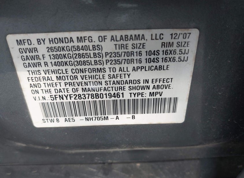 5FNYF28378B019461