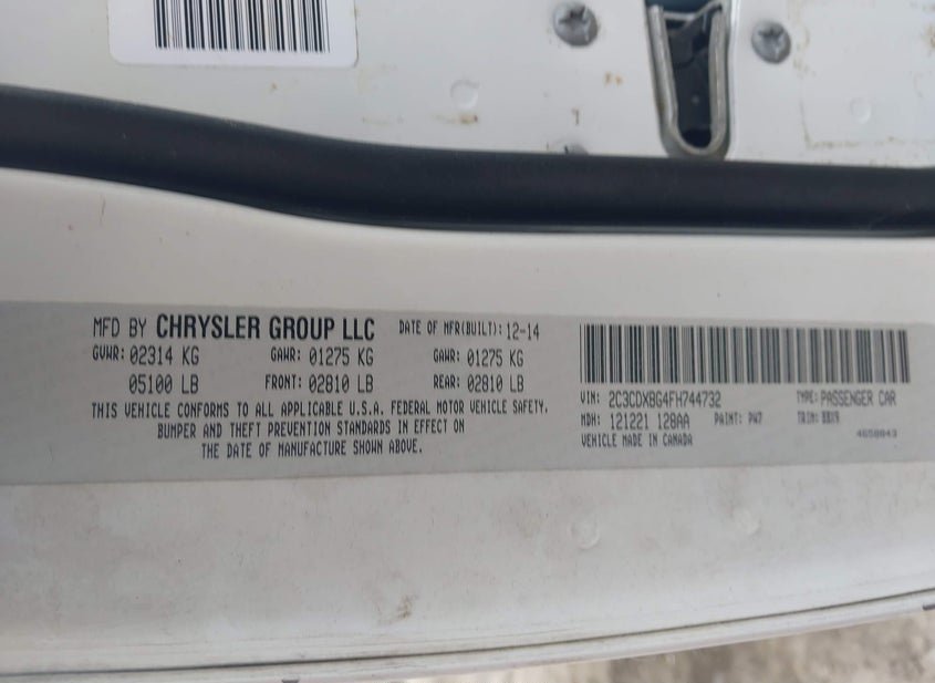 VIN: 2C3CDXBG4FH744732 · Rincon, GA, 31326 · GA Salvage