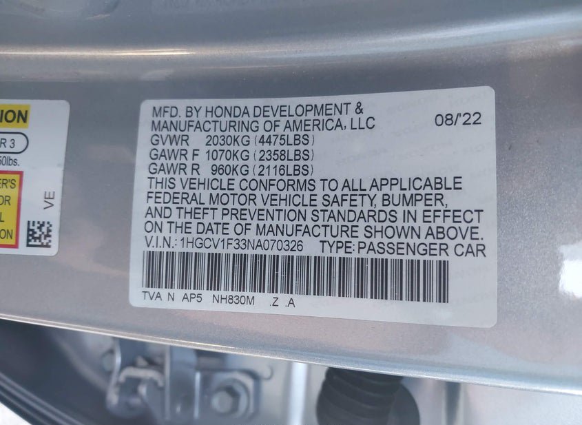 1HGCV1F33NA070326