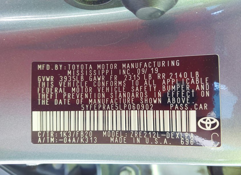 VIN: 5YFEPRAE5LP060902 · Athens, AL, 35613 · AL Salvage