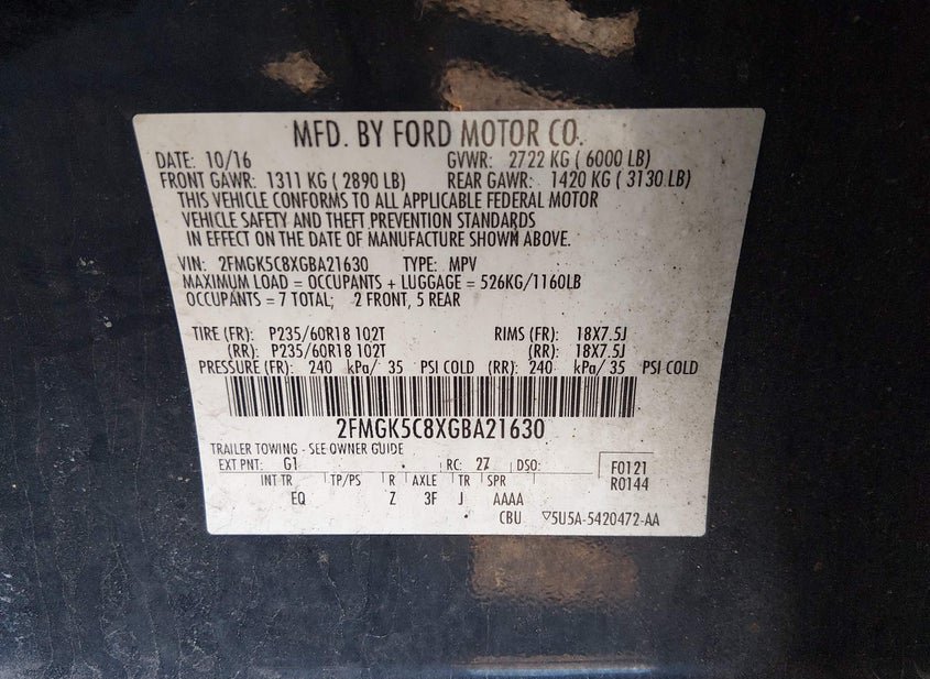 VIN: 2FMGK5C8XGBA21630 · BRIDGEPORT, PA, 19405 · PA SALVAGE