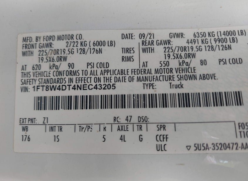 VIN: 1FT8W4DT4NEC43205 · Graham, NC, 27253 · NC Salvage