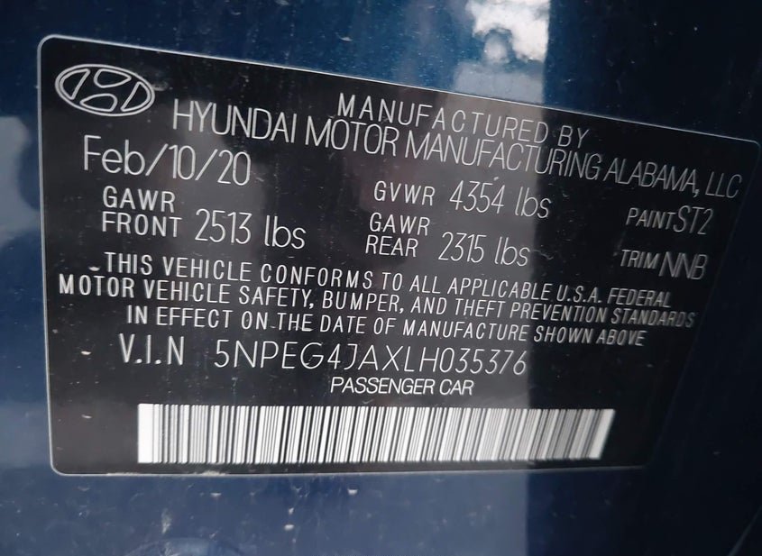 VIN: 5NPEG4JAXLH035376 · RANCHO CORDOVA, CA, 95742 · VA CLEAR