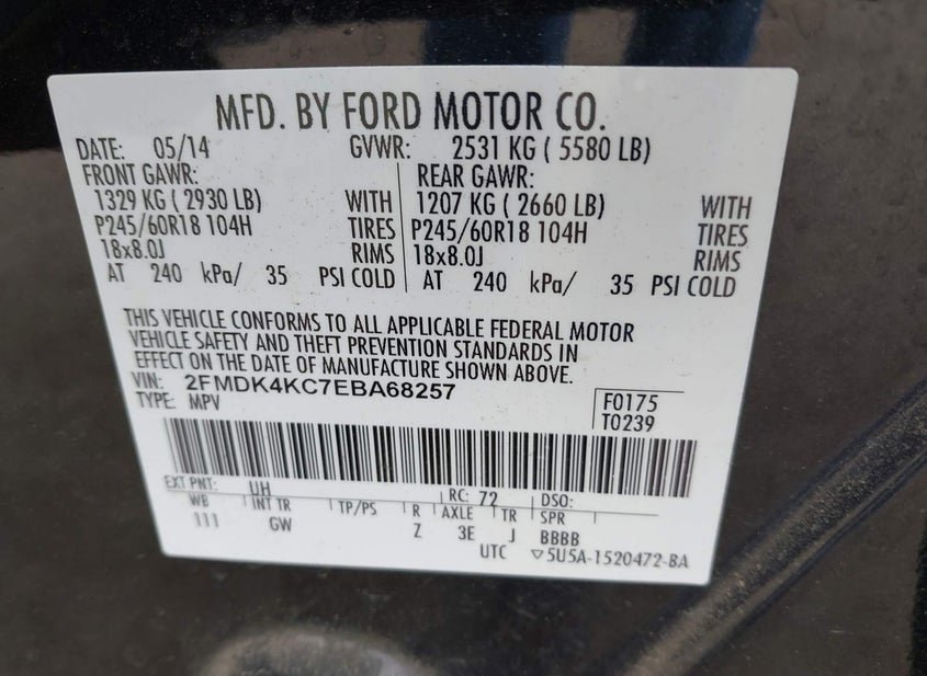 VIN: 2FMDK4KC7EBA68257 · FARGO, ND, 58102 · ND SALVAGE
