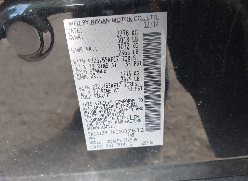 VIN: 5N1AT2ML7FC807632 · Dundalk, MD, 21222 · MD Clear