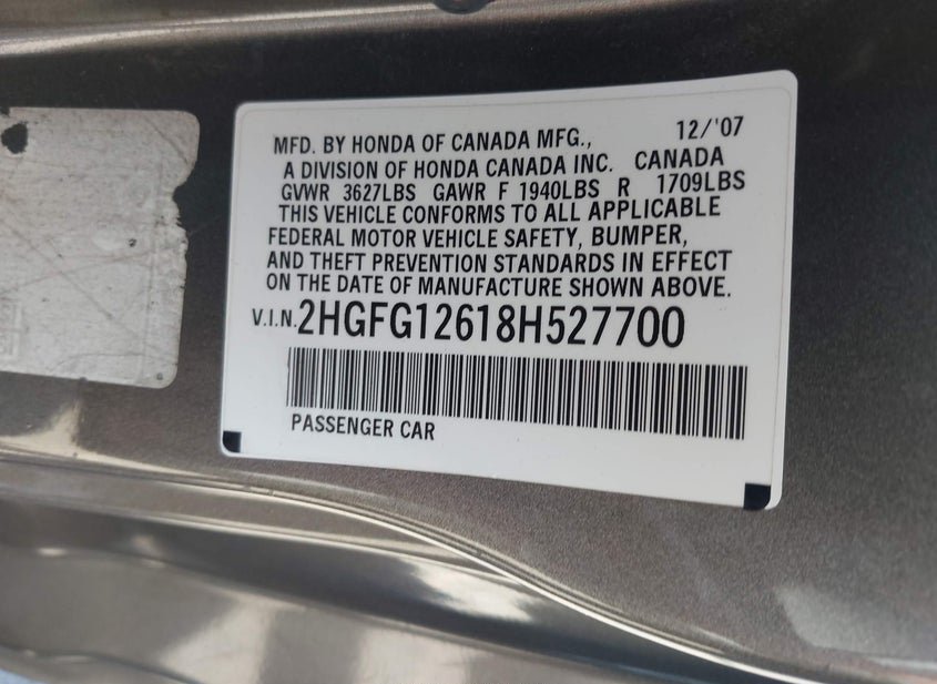 2HGFG12618H527700
