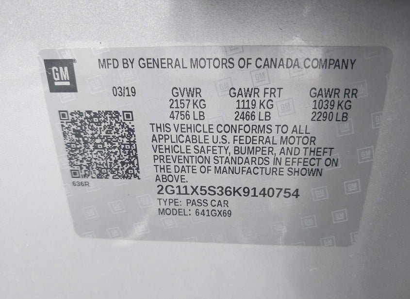 VIN: 2G11X5S36K9140754 · Fredericksburg, VA, 22406 · VA Sf97