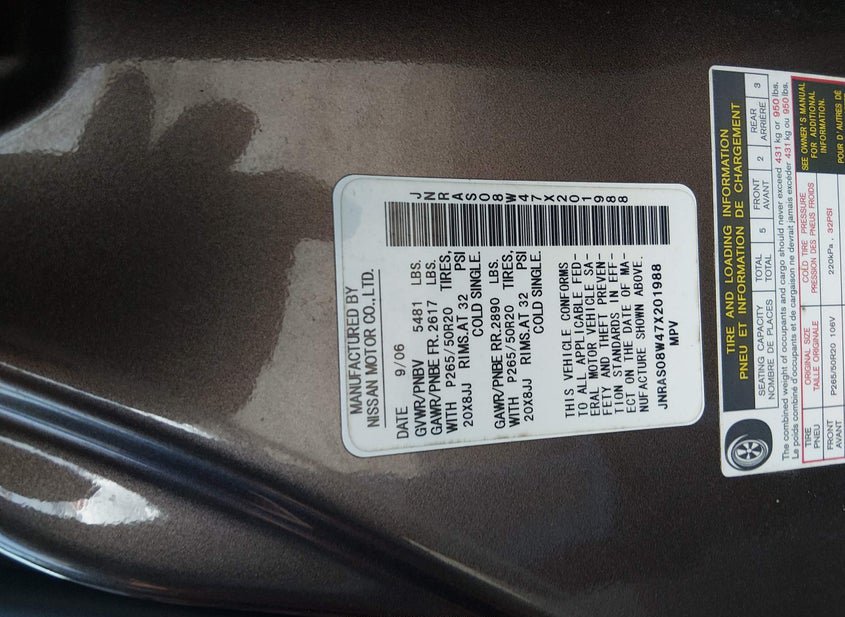 VIN: JNRAS08W47X201988 · ENGLISHTOWN, NJ, 07726 · NJ CLEAR PREVIOUS ACCIDENT PER AUTOCHECK