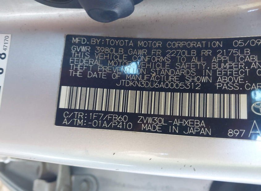 VIN: JTDKN3DU6A0005312 · Phoenix, AZ, 85041 · AZ Clear-Dealer Only