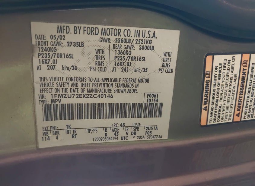 VIN: 1FMZU72EX2ZC40146 · Flint, MI, 48507 · MI Clear