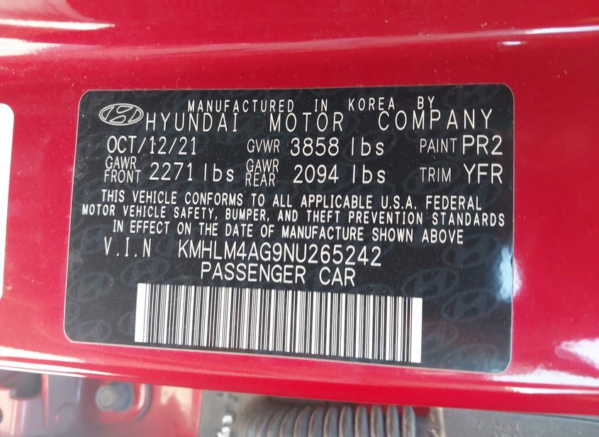 VIN: KMHLM4AG9NU265242 · San Antonio, TX, 78224 · TX Salvage