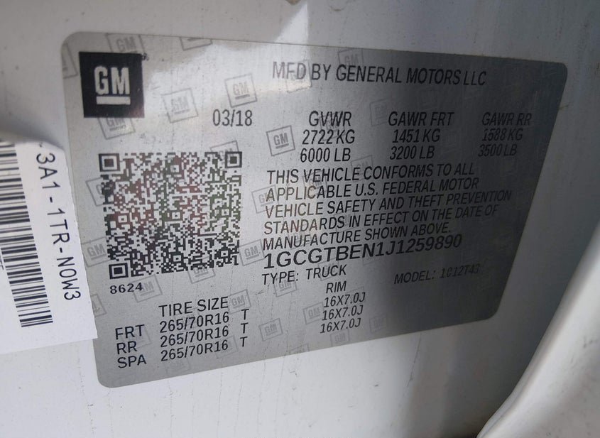 VIN: 1GCGTBEN1J1259890 · Rancho Cordova, CA, 95742 · CA SF97