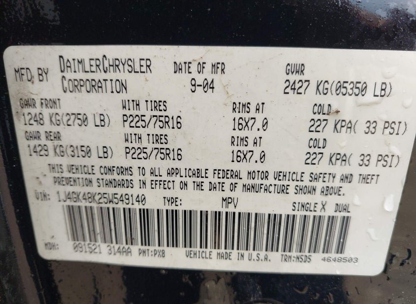 VIN: 1J4GK48K25W549140 · Knoxville, TN, 37914 · TN Clear
