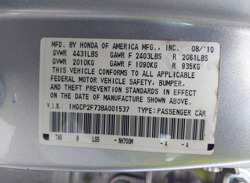 1HGCP2F73BA001537