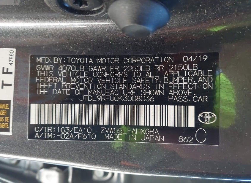 VIN: JTDL9RFU0K3008036 · Grove City, OH, 43123 · OH Salvage