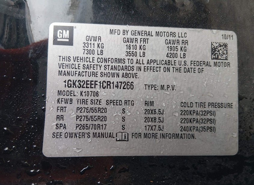 VIN: 1GKS2EEF1CR147266 · Nashville, TN, 37218 · TN Clear