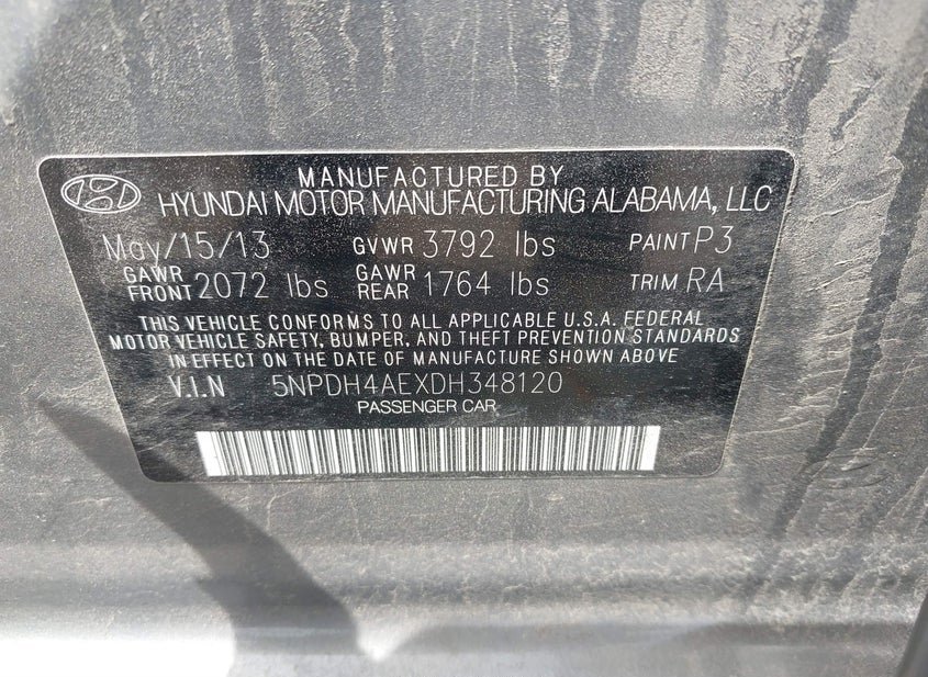 VIN: 5NPDH4AEXDH348120 · Grove City, OH, 43123 · OH Salvage
