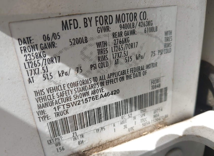 VIN: 1FTSW21576EA46420 · HOUSTON, TX, 77032 · TX ORIGINAL AFFIDAVIT OF CORRECTION ATTACHED