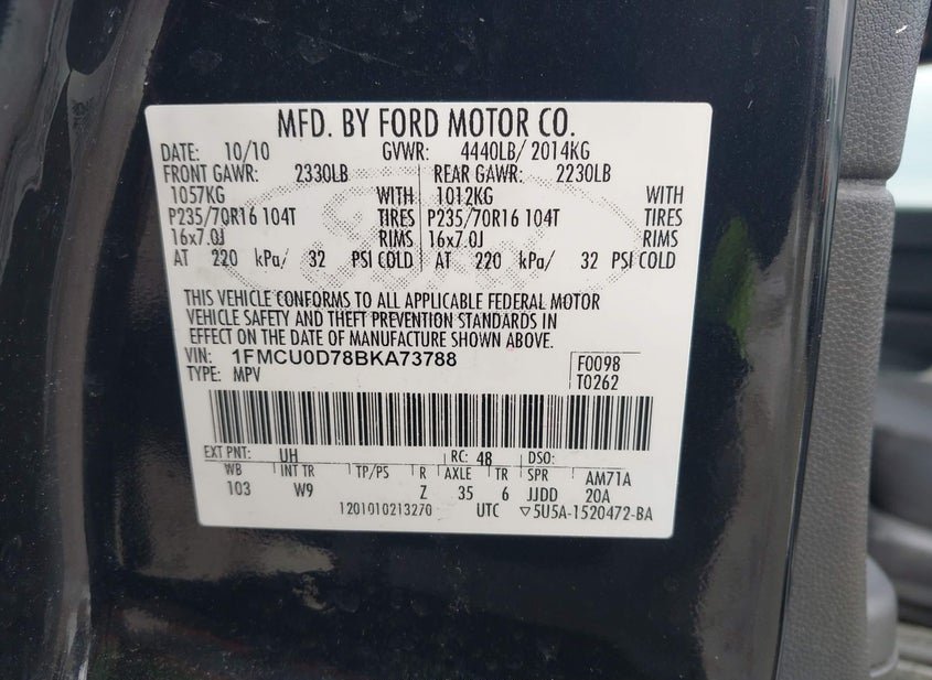 VIN: 1FMCU0D78BKA73788 · APPLETON, WI, 54914 · WI CLEAR-ENDORSEMENT
