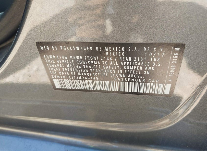 VIN: 3VW2B7AJ7JM240449 · HAWLEY, TX, 79601 · TX CLEAR