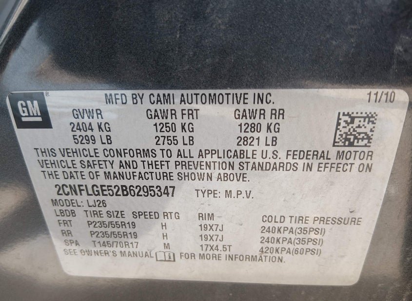 VIN: 2CNFLGE52B6295347 · Buckhannon, WV, 26201 · WV Clear-Dealer Only