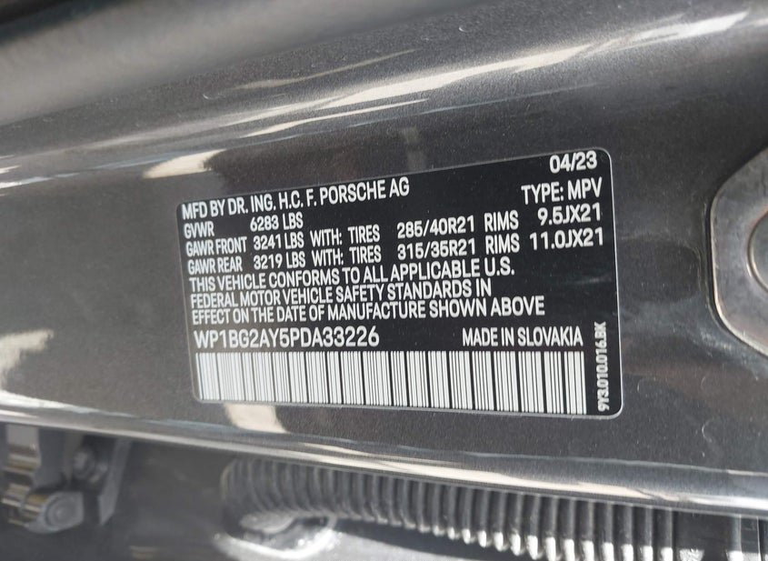 VIN: WP1BG2AY5PDA33226 · Houston, TX, 77032 · FL Certificate Of Destruction NOT ACTUAL MILEAGE