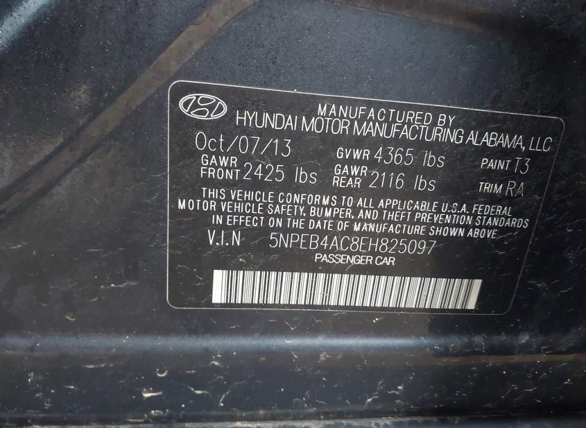 VIN: 5NPEB4AC8EH825097 · East Dundee, IL, 60118 · IL Clear TITLE SIGNED WITH 115363 ACTUAL MILES
