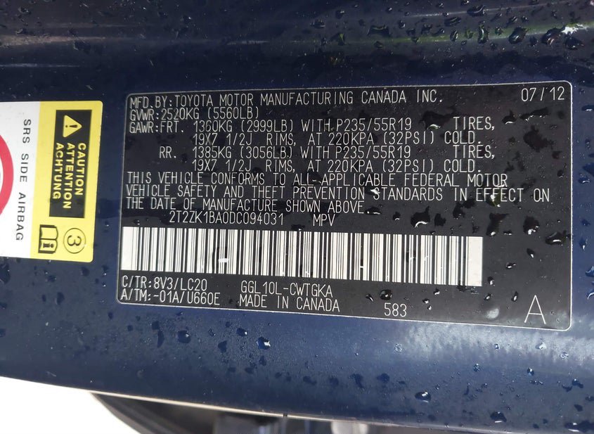 VIN: 2T2ZK1BA0DC094031 · Bay Point, CA, 94565 · CA Salvage