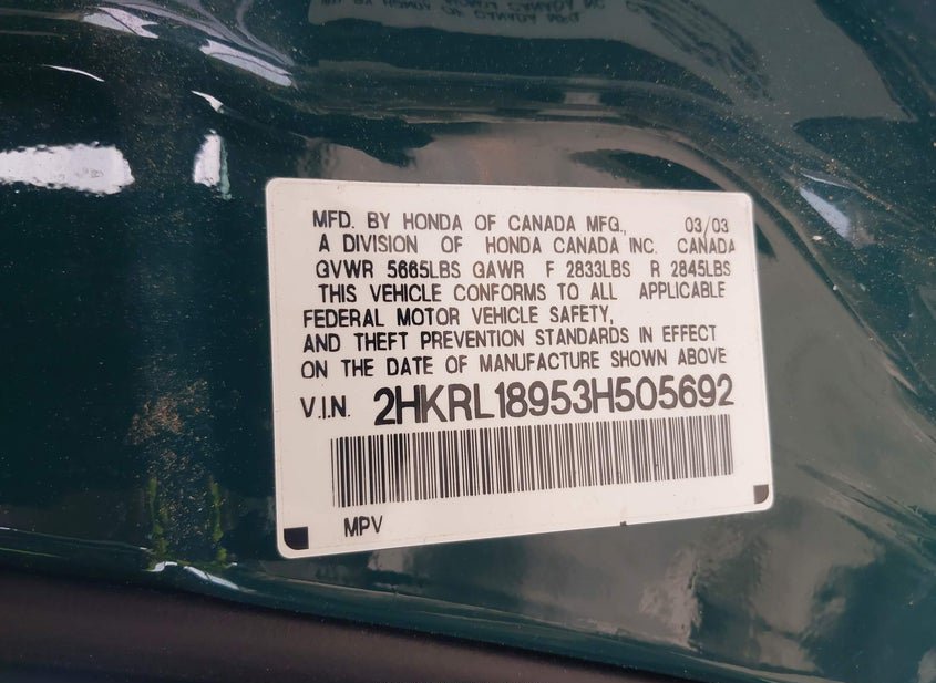 VIN: 2HKRL18953H505692 · Ashland, VA, 23005 · VA Clear