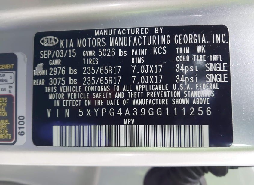 VIN: 5XYPG4A39GG111256 · East Taunton, MA, 02718 · MT Clear