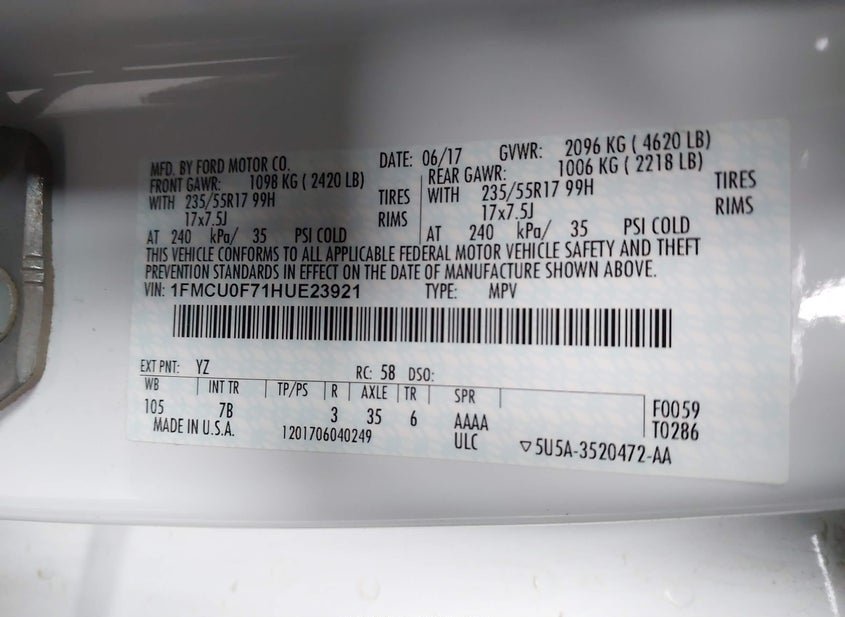 1FMCU0F71HUE23921
