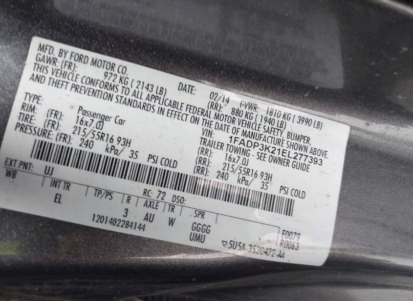 VIN: 1FADP3K21EL277393 · SAN ANTONIO, TX, 78224 · TX ORIGINAL OPEN RECALL ON AUTOCHECK