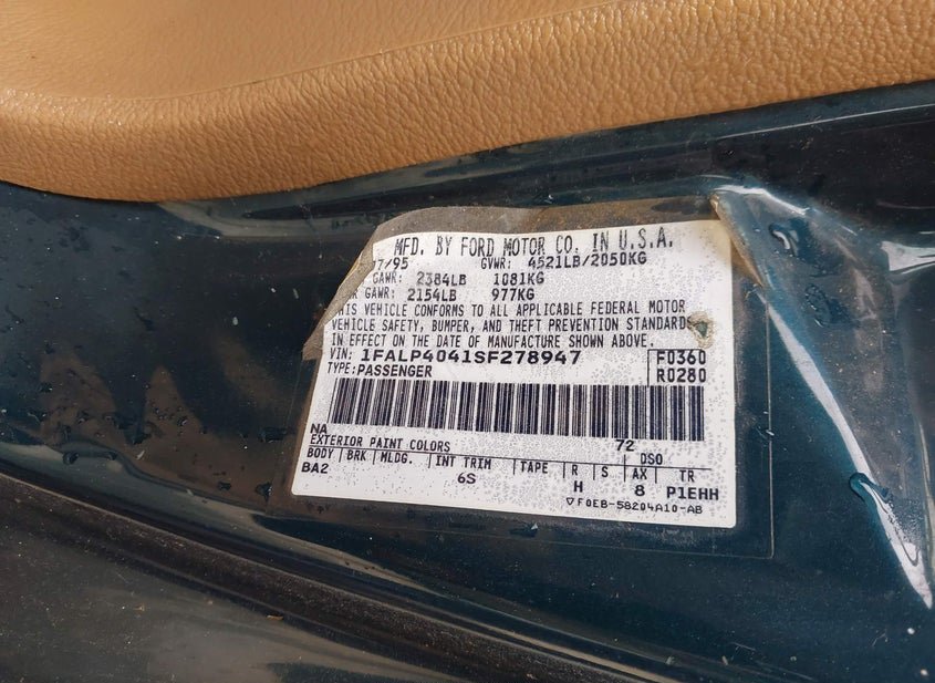 VIN: 1FALP4041SF278947 · Bay Point, CA, 94565 · CA Salvage Title - Dealer DMV $452