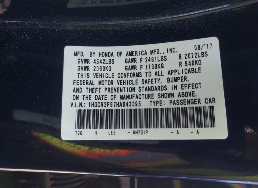 VIN: 1HGCR3F97HA043395 · Gardena, CA, 90248 · CA Salvage