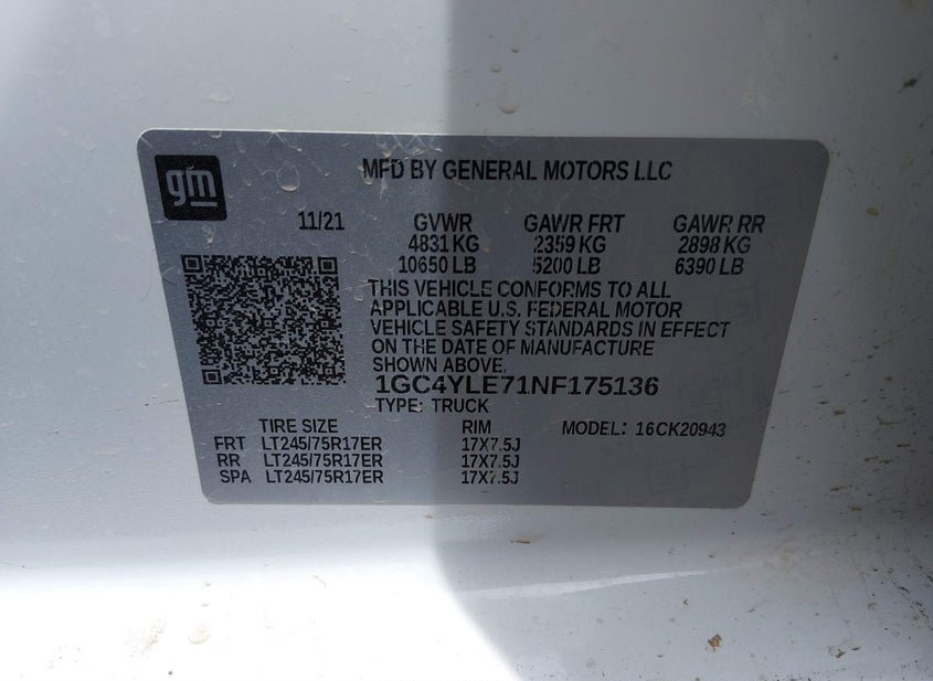 VIN: 1GC4YLE71NF175136 · Grenada, MS, 38901 · MS Sf97
