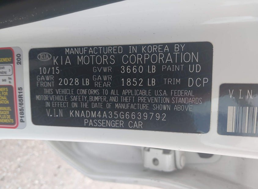 VIN: KNADM4A35G6639792 · Hudson, FL, 34667 · FL Rebuildable PREV SALVAGE