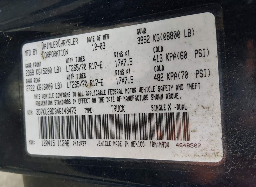 VIN: 3D7KU28D34G148473 · PORT MURRAY, NJ, 07865 · NJ CLEAR