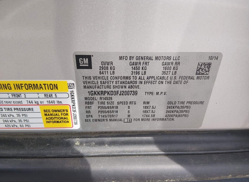 VIN: 1GKKRPKD3FJ200739 · Clayton, NC, 27520 · NC Clear DAMAGE REPORTED DEALER ONLY