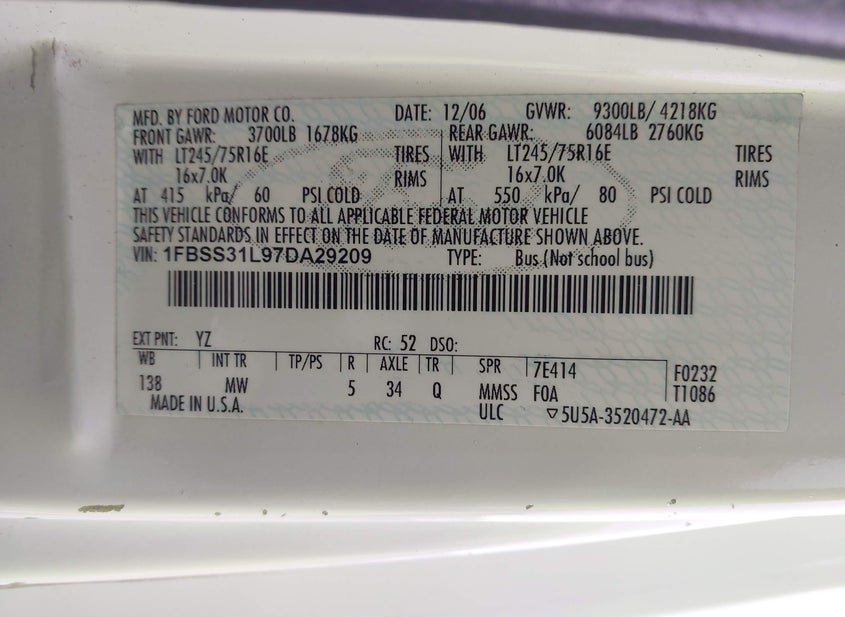 VIN: 1FBSS31L97DA29209 · Donna, TX, 78537 · TX Original
