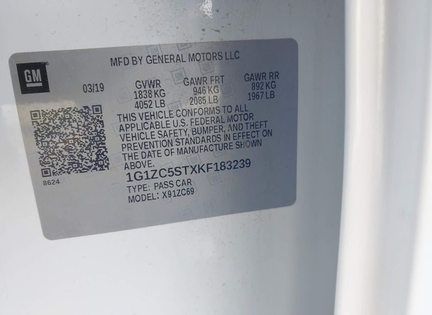 VIN: 1G1ZC5STXKF183239 · Santa Clarita, CA, 91387 · CA SF97