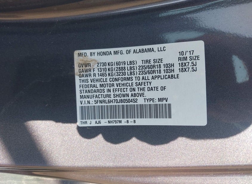 5FNRL6H70JB050452