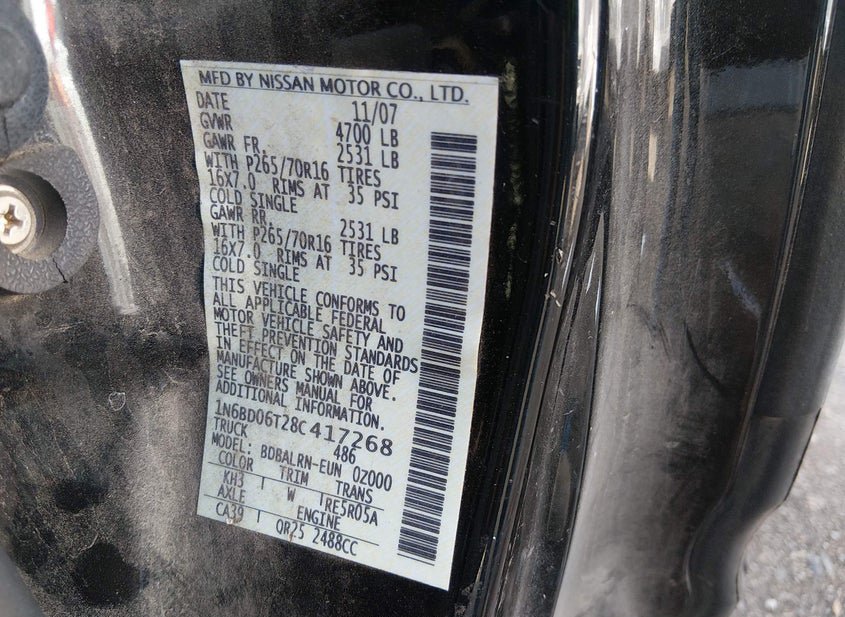 VIN: 1N6BD06T28C417268 · NASHVILLE, TN, 37218 · TN CLEAR