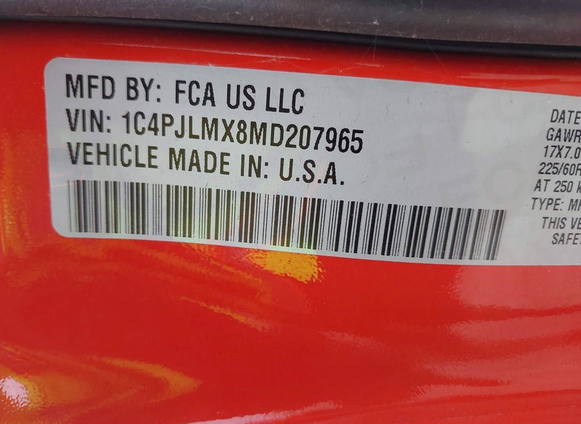 VIN: 1C4PJLMX8MD207965 · Hudson, FL, 34667 · FL Certificate Of Destruction