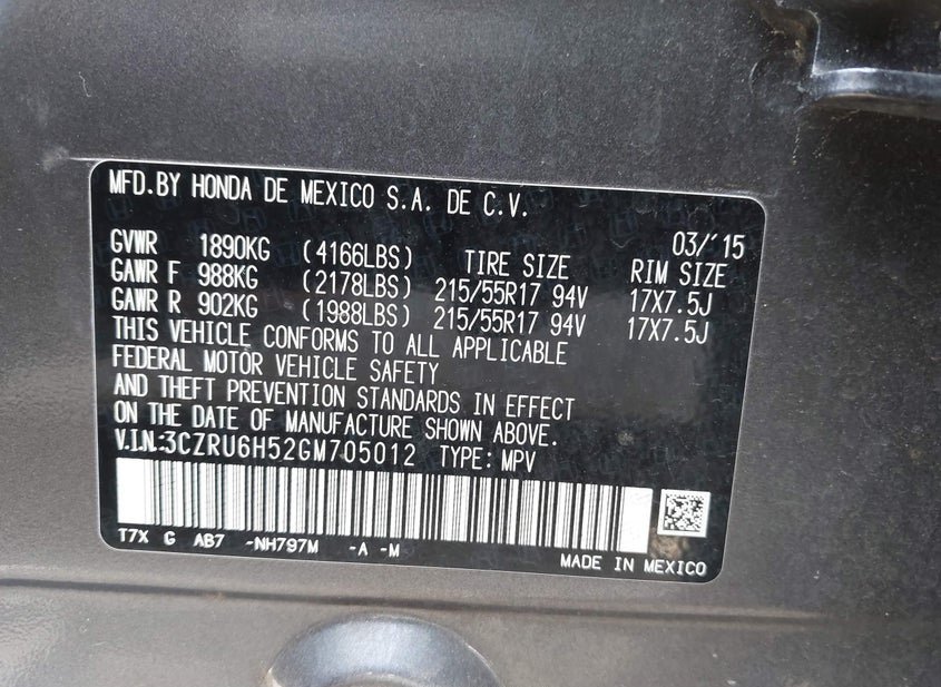 VIN: 3CZRU6H52GM705012 · Puyallup, WA, 98374 · WA Clear DEALER ONLY