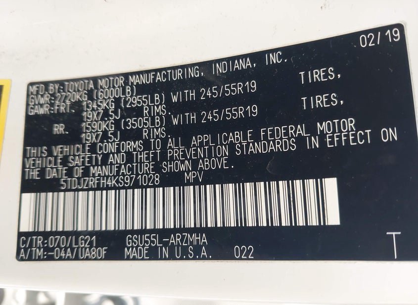 2019 Toyota Highlander 3.5L